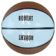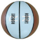 Modern basketball with a white monogram and a black typography name on a light blue background. Personalize name and initial.