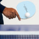 Modern ping pong paddle with a girly, blight blue background and a black hand lettered script. Personalize with your name.