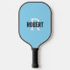 Modern light blue white monogram name mens pickle ball paddle. Personalize with your name and initial.