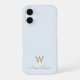 Modern Light Dusty Blue Gold Script Monogram iPhone 16 Case