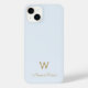 Modern Light Dusty Blue Gold Script Monogram iPhone Case