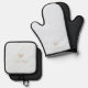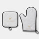 Modern Light Dusty Blue Gold Script Monogram Oven Mitt & Pot Holder Set