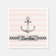 Trendy paper napkins with grey watercolor anchor on a light pink & white striped background. You can also personalize the design with custom text under the anchor.