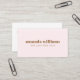 Pale pink or any colour business cards or personal profile cards with your name and title/business name on the front. Customizable contact information on the back. The card has a thin, subtle white border on the front.