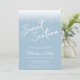 This dusty blue and white sweet 16 invitation features a modern script font with glam lights.
