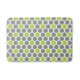 This bath mat features a colourful geometric hexagon pattern in lime green and grey.