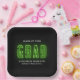 Modern graduation paper plates featuring "Grad" displayed in lime green neon lettering with a black background (or color of your choice). Personalize the neon graduation plates with the graduate's name, school name, and graduation year. The personalized graduation paper plates are perfect to use for both high school and college graduation parties!