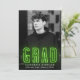 Announce your grad's special achievement with our neon graduation announcements. The modern graduation announcement displays the graduate's vertical photo with "Grad" in lime green neon lettering. Personalize the neon graduation announcement by adding the graduate's name, school name, and graduation year. The announcement reverses to display a solid lime green background with space for additional photos and/or text. The photo graduation announcement is perfect for both high school and college graduates.