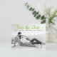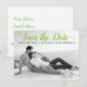 Modern lime green script wedding Save the Date photo postcard. This contemporary typography Save the Date design features a black and white photo of the couple and the text "Save the Date" in a modern script font.