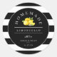 Modern chic limoncello favour stickers. Design features, watercolor lemons and leaves, black and white stripe pattern background and template text lines for your name and event date.