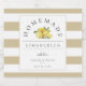 Rustic watercolor lemons and leaves, modern limoncello beverage label. Labels feature, chic rustic sandy beige and white stripe pattern background.