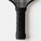 Modern Linen Plaid Pattern with Name - black grey Pickleball Paddle