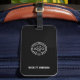 Simple luggage tag features your name and business logo on the front and room for you to insert your details on the back. Ideal for as a promotional item to give to your employees for business travel and trade shows.