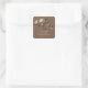 Cute love birds Bridal Shower square sticker featuring bride & groom birds sitting on a branch with green flowers set on a chocolate brown background. Great for bridal shower favour tags & envelope seals! Customize with your bridal shower information and you're all set to go! Matching invitations and postage stamps available in our shop www.celebrateitinvites.com.