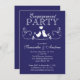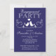 Modern Love Birds Engagement Party Invitations featuring a sweet pair of chic white love birds sitting on a stylish vintage flourish branch set on a beautiful classic classy dark navy blue background. Visit our shop for a large selection of trendy & popular engagement invitations.