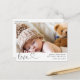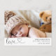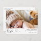Modern single photo on the front birth announcement postcard featuring a modern calligraphy heading love and birth stats. Parents message appears on the back. This modern birth announcement postcard is a sweet way to announce the birth of your newborn baby.