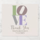 Stylish wedding favour mini sparkling wine labels done in ivory, with colourful graphic text reading LOVE. Personalize the bride and groom's names and wedding date to suit your wedding needs. Matching products are available.