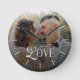 Modern Love Custom Wedding Photo Couples Monogram Round Clock