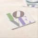 Stylish wedding cocktail coasters or favours, with colourful graphic text reading LOVE, on an ivory background. Matching products are available.