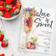 Elégante Champagne moderne et Boho de fraise Blush Rose Summer Bridal Shower Invitation avec calligraphie "L'amour est doux"