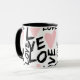 A modern take on love, featuring a scribbled black font and hand-drawn pale pink hearts, reminiscent of the famous "LOVE" sculpture from the 1970's.