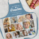 Create your own grandmother apron featuring a 13 photo collage template, a dusty blue background, the title "we love you grandma", the grandchildrens names, a love heart, and the cute saying "you make life sweet".