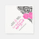 Bold modern luxe style wedding napkins features a luxe black and white stripe and leaf panel and two bright hot pink carnation flowers on a white background. Great for co-coordinating with a simple black and white with a dash of bright pink wedding or for a modern wedding. Edit these art wedding napkins with your bride and grooms name. Perfect for those who like simplicity and modern luxe romance. Ideal for wedding dinners, great for wrapping wedding cake slices and for use at the wedding reception. Design and original art by Sarah Trett.