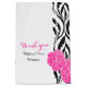 Show your appreciation to your maid of honour or other wedding attendants with this thank you wedding favour gift bag. Perfect to fill with a special gift or gifts to show your appreciation. Fashionable modern black and white luxe design with a bold splash of hot pink carnations. Matches modern luxe carnation wedding set. Customize / personalize these gift favour bags with your attendants title, name and a personal message or thanks. Currently reads Thank you Maid of Honour Arianna. Unique art and design by Sarah Trett.
