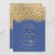 Modern Luxury Gold Blue Glitter Confetti Wedding Invitation