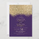 Modern Luxury Gold Violet Glitter Confetti Wedding Invitation