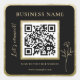 Make a lasting impression with this modern luxury QR code sticker, designed for professionals who appreciate elegance and simplicity. Set against a rich black background and framed with a striking golden border, the design is elevated by delicate, minimalist floral line art that adds a graceful, contemporary touch. This square sticker is more than just beautiful—it’s functional too. With customizable text and a scannable QR code, it’s perfect for linking to your website, portfolio, booking page, or digital business card. Whether you’re in beauty, wellness, coaching, or event planning, this sticker adds a polished, professional finish to your packaging, client gifts, or promotional materials, helping your brand stand out with timeless style and sophistication.