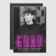 Announce your grad's special achievement with our neon graduation magnetic cards. The modern graduation announcement magnet displays the graduate's vertical photo with "Grad" in magenta neon lettering. Personalize the neon graduation announcement by adding the graduate's name, school name, and graduation year. The photo graduation announcement is perfect for both high school and college graduates.