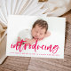 Modern Magenta Script Introducing Photo Birth Announcement