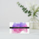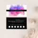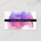 Chic watercolor business cards feature your name or company name layered on a blooming inkblot illustration in bright, colourful shades of fuchsia pink, magenta and violet. Add your full contact information to the back in white on crisp black. Includes your custom loyalty offer (shown with "enjoy 20% off any service after five visits"), and six punchouts.