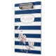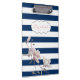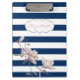 Modern Magnolia On Navy Blue Stripes-Personalized Clipboard