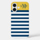 Modern Maize Yellow Navy Stripes Custom Monogram Case-Mate iPhone Case