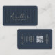Modern Makeup Artist Monogram Dark Blue Script QR business card with QR code