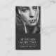 Edgy and bold, this modern minimalist artistic black and white photo hair stylist business card template is a stand out, to customize with your own creative photo in colour or black and white. Social media on the back. Black and white photos add drama to your style.