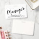 A simple stylish modern managers ID badge featuring a script typography title and your name and company name or region. Simple, modern, stylish. For management staff for meetings, events, and conventions.