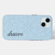 Modern and chic mandala in dusty blue colour palette phone case with script font that you can personalize.
