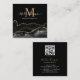 Modern Marble Black Gold Photo QR Code Monogram Square Business Card