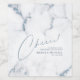A handwritten, signature font combined and glitter-veined marble backgrounds add just the right touch for an elegant wedding in this coordinated wedding set. The wine label shown here features your names and wedding date with flowing script text of 'Cheers' on a white marble background veined in dusty blue. Search ID816 to see other pieces and colour choices for this set.