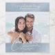 A handwritten, signature font combined and glitter-veined marble backgrounds add just the right touch for an elegant wedding in this coordinated wedding set. The wine label shown here features your own image, names and wedding date with flowing script text of 'complimentary' and 'Cheers' on a blue, watercolor background. Search ID816 to see other pieces and colour choices for this set.