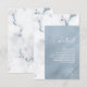 An abstract background reminiscent of glitter-veined marble in shades of dusty blue through steel blue and white is the backdrop for elegant script text and modern design layouts in the pieces of this beautiful wedding suite. The wedding 'Details' card shown here features right-aligned text on a dusty blue, watercolor background bordered by elegant marble. Easily add your own initials, wedding date and pertinent wedding info using the provided template. Search ID816 to see other pieces and colour choices for this set.
