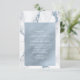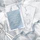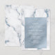 An abstract background reminiscent of glitter-veined marble in shades of dusty blue through steel blue and white is the backdrop for elegant script text and modern design layouts in the pieces of this beautiful wedding suite. The wedding rehearsal dinner invitation shown here features a dusty blue, watercolor inset bordered by elegant marble as the background for white text. Easily add your event details using the provided template. Search ID816 to see other pieces and colour choices for this set.