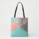 Modern Marble Mint Coral Pastel Gold Monogram Tote Bag