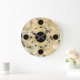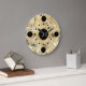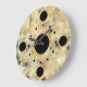 Modern printed marble look wall clocks with black and gold dots on the clock face in this decorative wall decor clock design for your kitchen, bathroom, or any room in your house you want to add some colour and character.