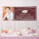 Modern graduation party banner featuring a stylish maroon background that can be changed to the colour of your choosing. Personalize this custom design with your own photo, name, school name and graduation year.