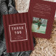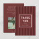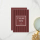 Graduation thank you card with a modern, sporty, maroon striped background, ideal for athletes. On the back of the card is a sample thank you message that you can customise. You can also add a photo of the grad.
