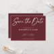 Modern maroon background and white handwritten style wedding Save the Date invitation card. This design features large calligraphy style font that you can change its colour. You can also customize all details and colours on this Save the Date design.